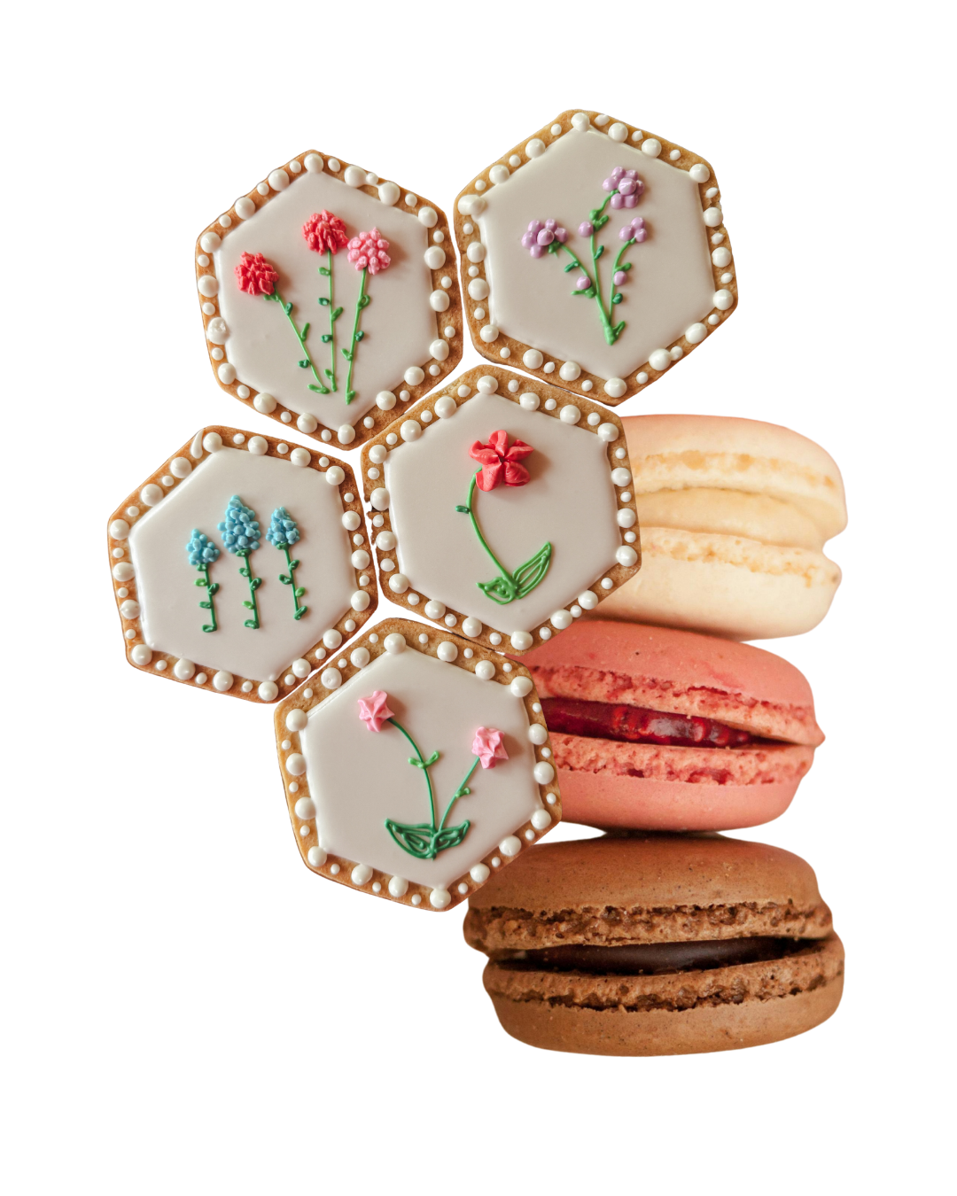 Our Royal Icing Sugar Cookies and Giant French Macarons are a labor of love. These aren't just cookies; they are tiny canvases of edible art. Whether for a bridal shower, a brand launch, birthday celebration or a gift, they are designed to be as beautiful as they are delicious.